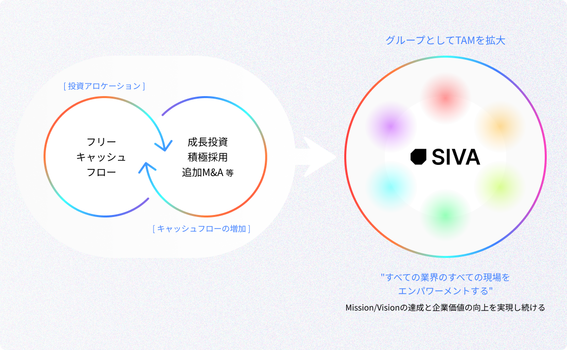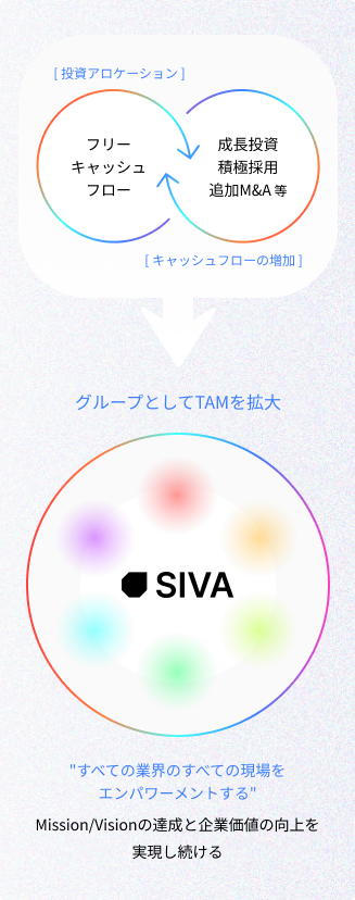 - 小規模なTAM(市場規模)のため単独成長に限界がある企業に、グループとして成長機会を提供